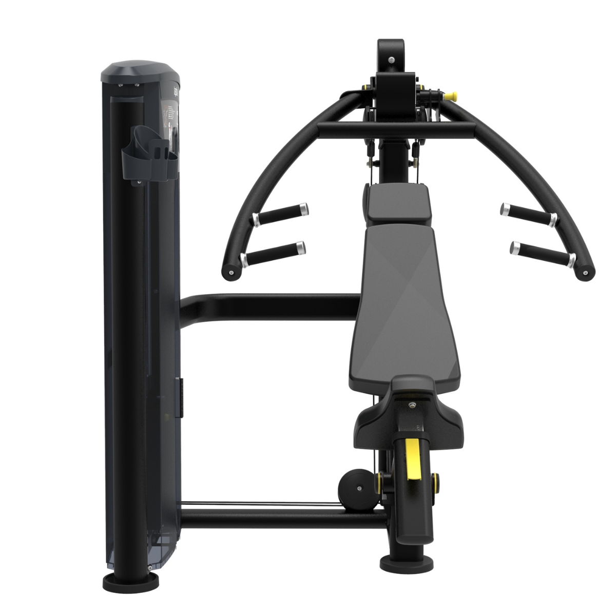 La estructura está construida con tubos de acero de alta resistencia (3 mm) en bastidor principal y partes funcionales, con tratamiento anticorrosión y pintura de doble capa para una mayor durabilidad incluso en uso intensivo. El diseño también incluye tapicería acolchada de alta densidad, acabados de calidad y poleas de movimiento suave que mejoran la experiencia de uso general.
